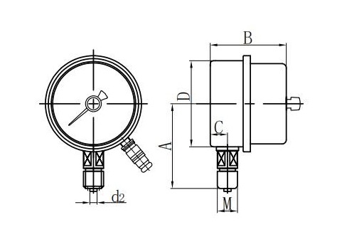 ◆ Kung kinakailangan upang makagawa ng isang shockproof type pressure gauge, maaari itong mapunan ng gliserin o silicone oil.
